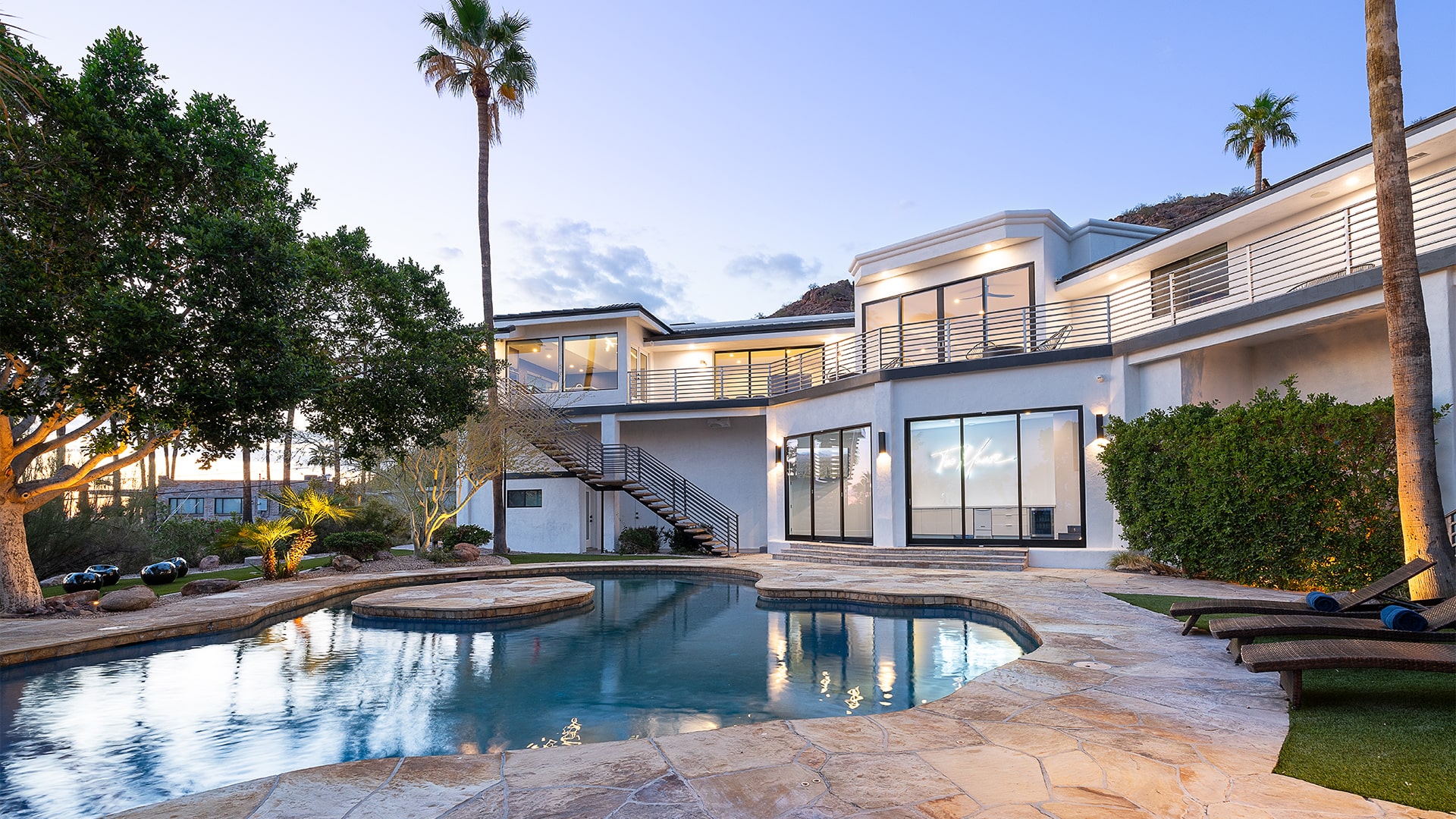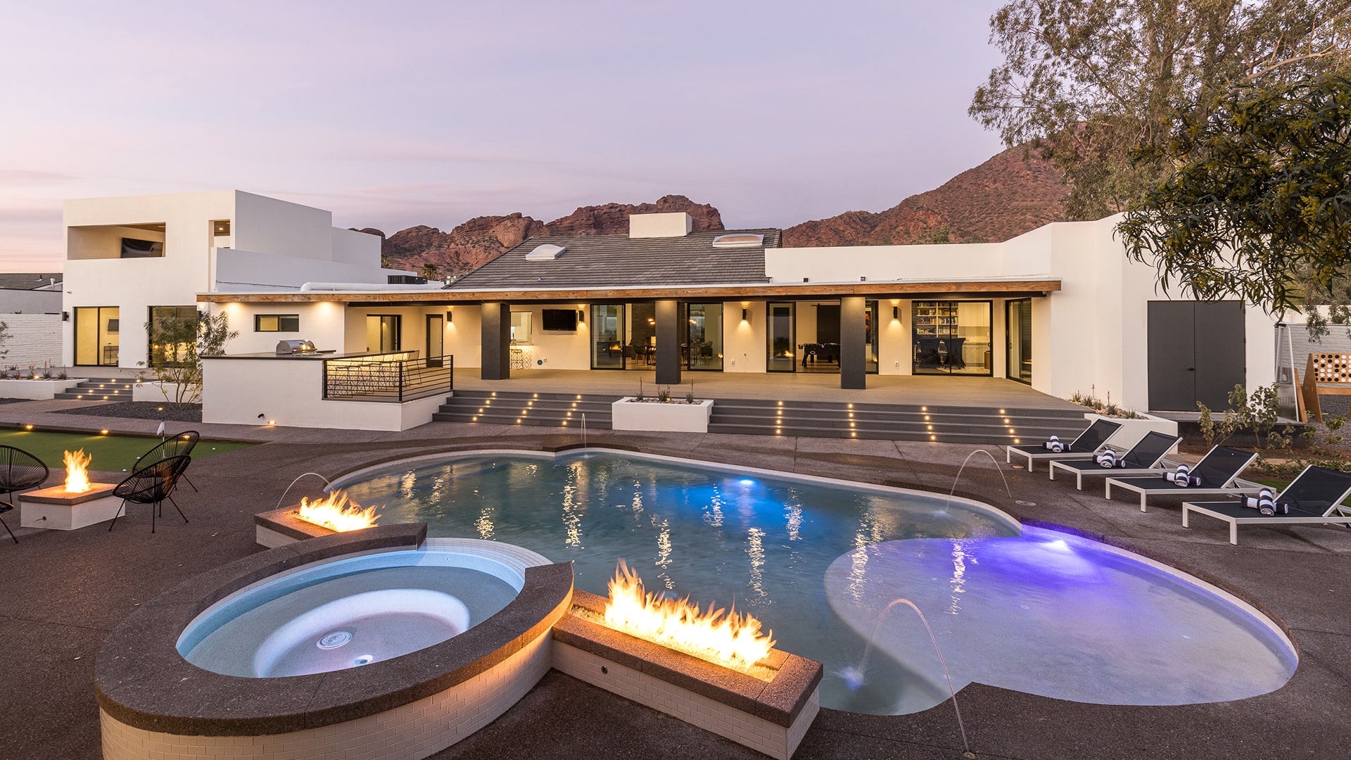 Experience the epitome of luxury retreats at La Casa Con Vista, one of the premier vacation rentals in Phoenix. This executive home rental is a modern masterpiece nestled into the side of Camelback Mountain, offering breathtaking views of the Phoenix skyline. Featured in Uptown Magazine, this 5,000-square-foot mansion vacation rental boasts high-end amenities including a heated negative edge pool and spa, billiards room, multi-room sound system, bocce ball/mini golf, firepit, and more. Book your stay at this private desert oasis for the ultimate in executive home rentals.